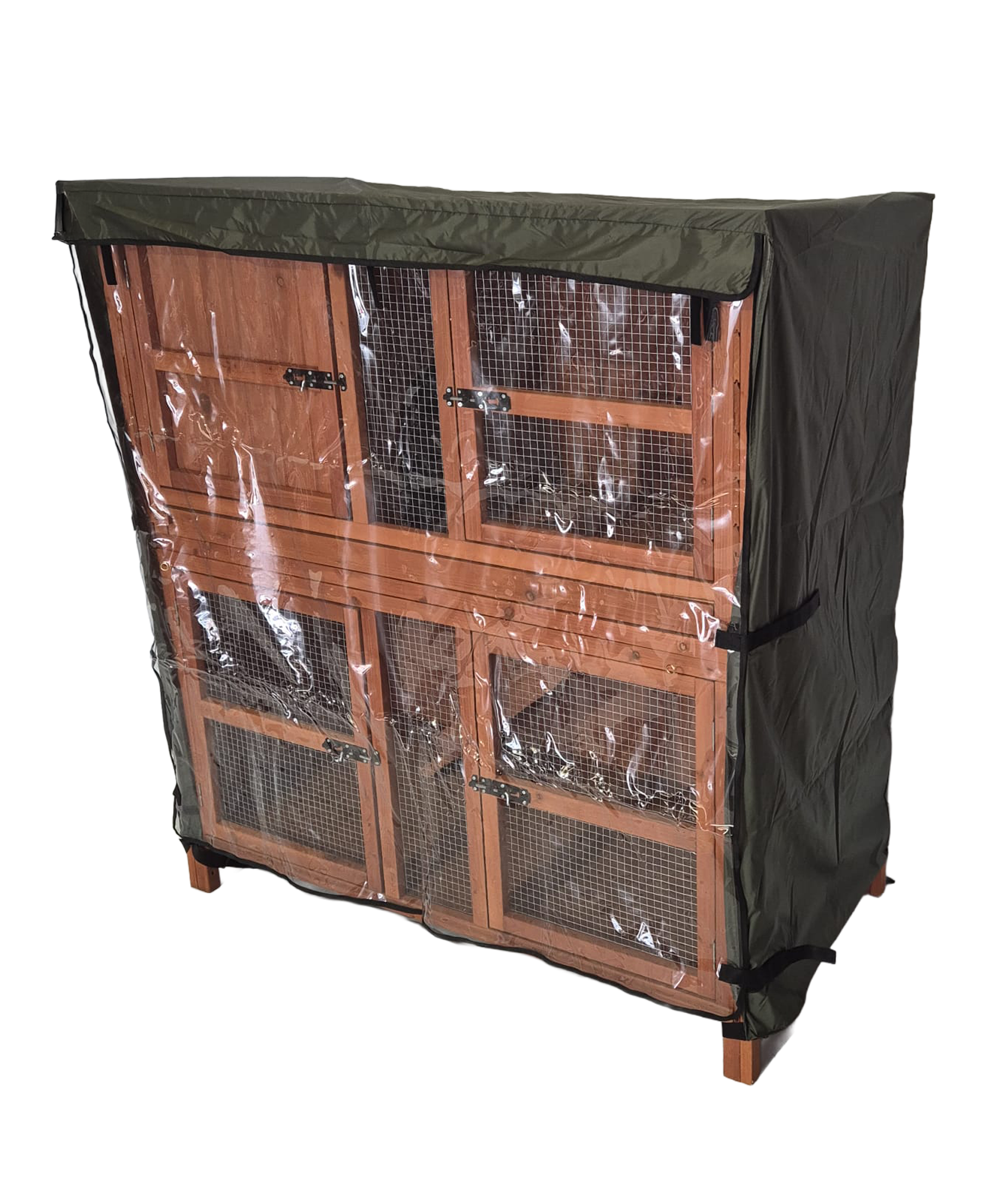 Keep the worst of the British weather at bay with our Hutch Hugger™, engineered to fit snugly over your hutch. With roll-up clear front screen for easy access and visibility, it shields against wind and rain, helping keep food dry and bedding fresh, a practical solution for year-round protection.