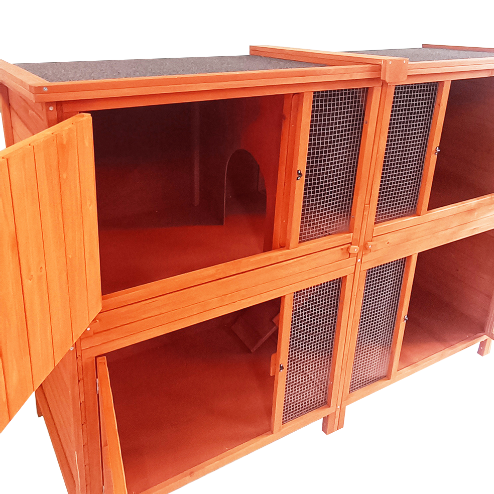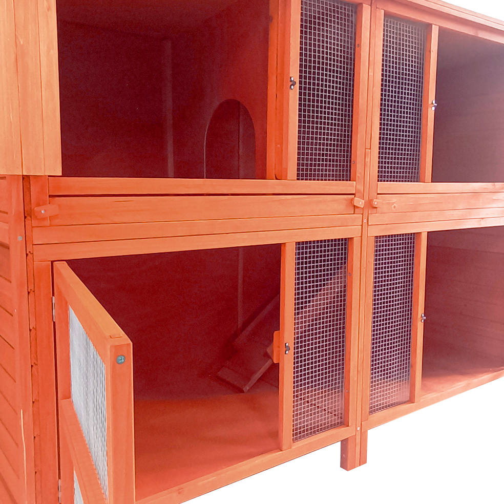 Our Double Rabbit Hutch is built with enhanced safety and convenience in mind. It features upgraded, strong mesh with 1/2-inch squares to safeguard your pets against potential predators. The 13mm plywood floors and 10mm timber side panels ensure durability and insulation, while the super-strong bolts on the doors add an extra layer of security.