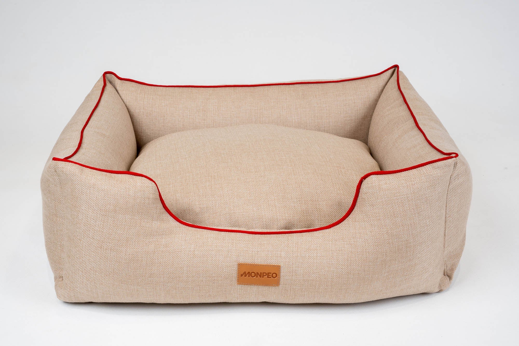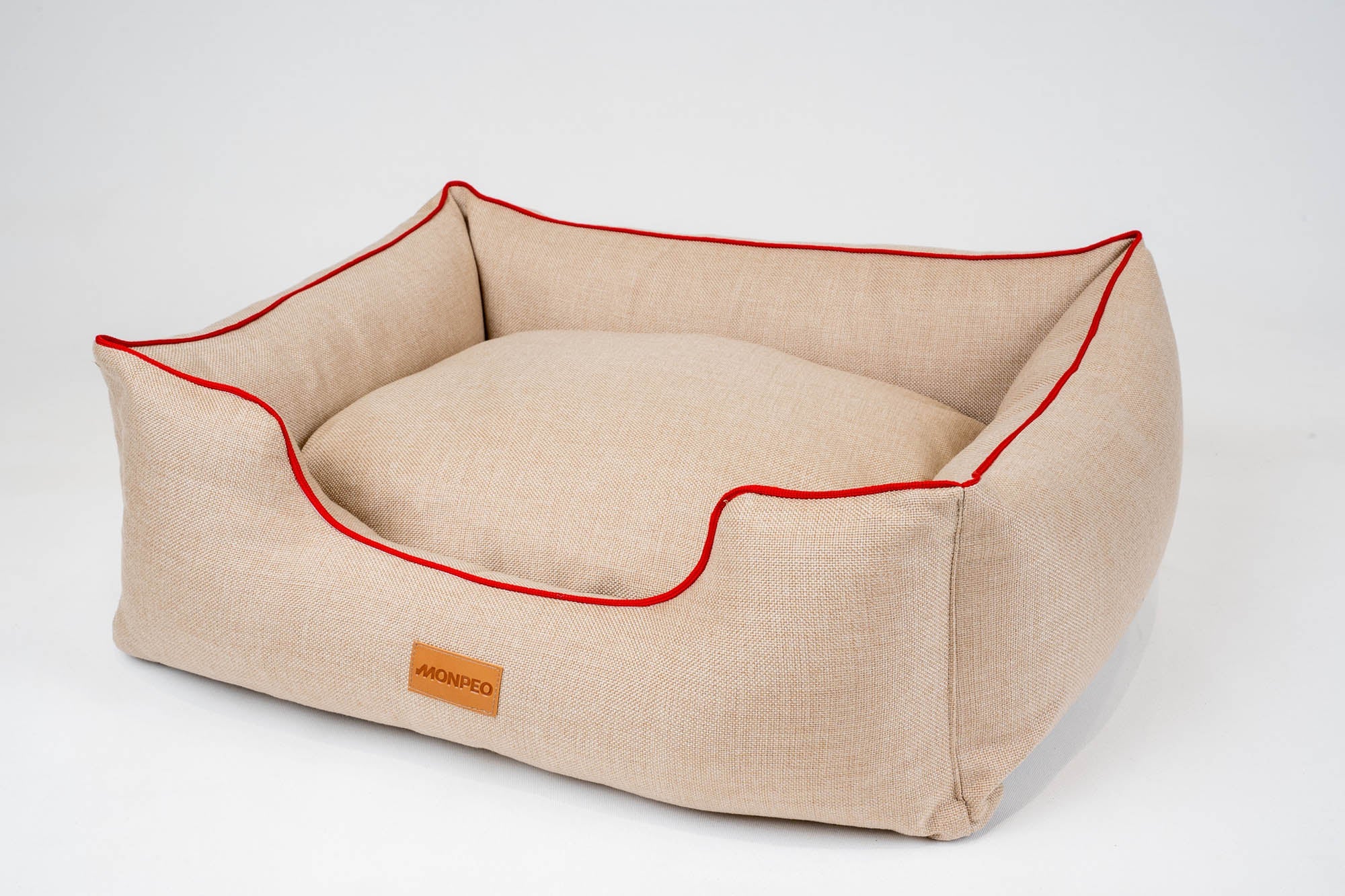 The Corso Naturel Dog Bed by Scratch & Newton is a stylish, timeless addition to any home. Featuring a charming red bias along the edge, this bedâs natural linen look adds warmth and elegance to your petâs space. Perfect for pet owners who value style as much as comfort, the Corso Bed combines a durable, pet-friendly construction with a soft, inviting surface.