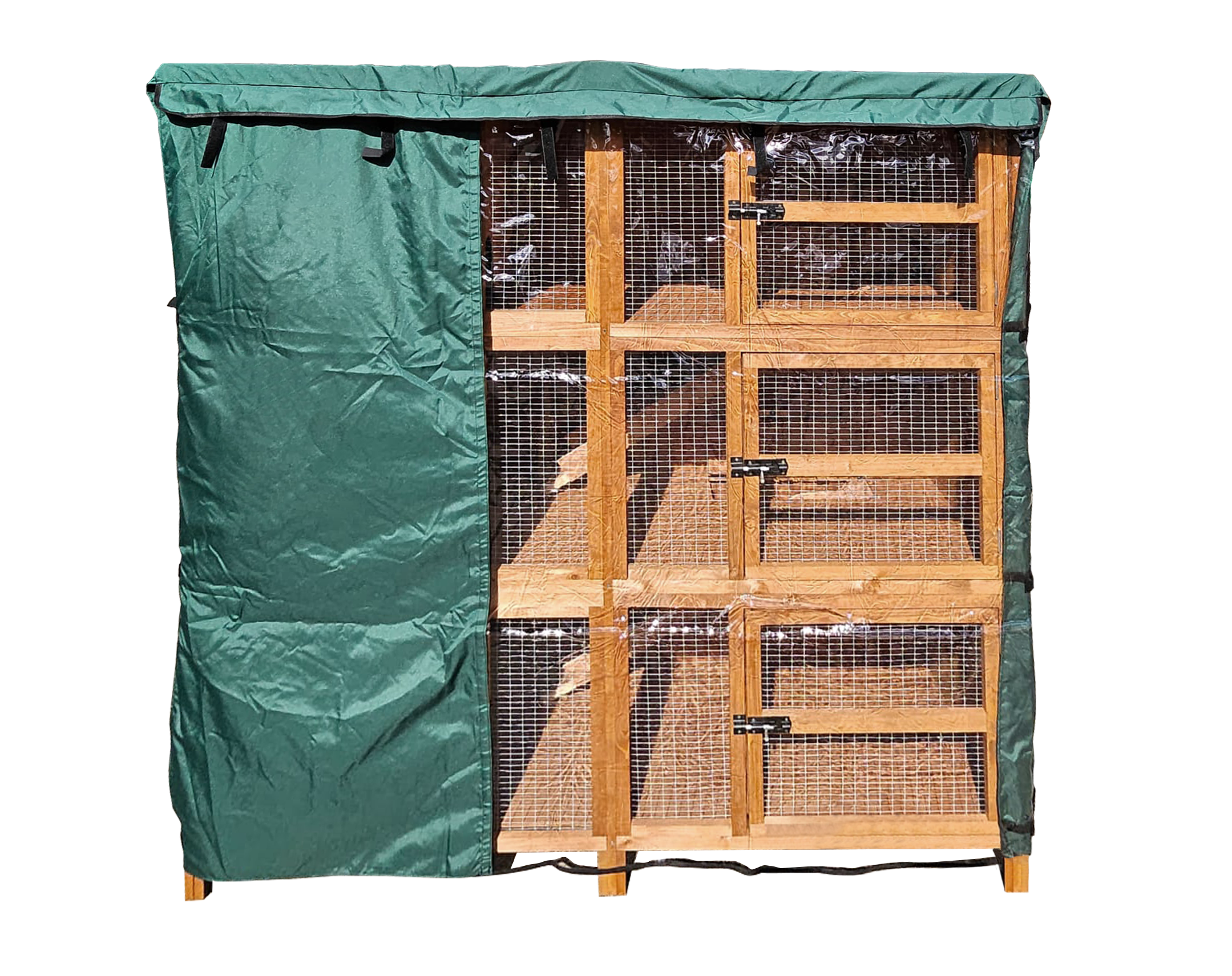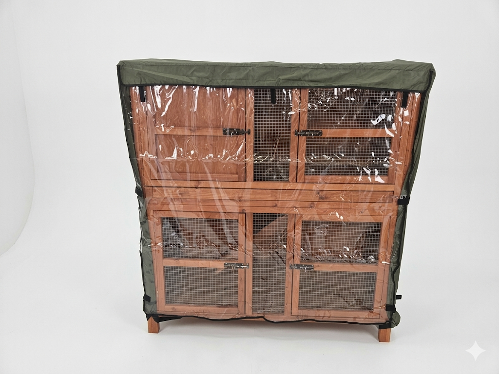 Introducing the Hutch Hugger™: your ultimate solution for ensuring your pet's well-being while simplifying your routine. Designed for effortless installation, simply place the Hutch Hugger™ over your hutch, adjust the straps, and voila! No need for constant removal, even during cleaning sessions, thanks to the easily rollable front window that securely tucks under the pelmet.