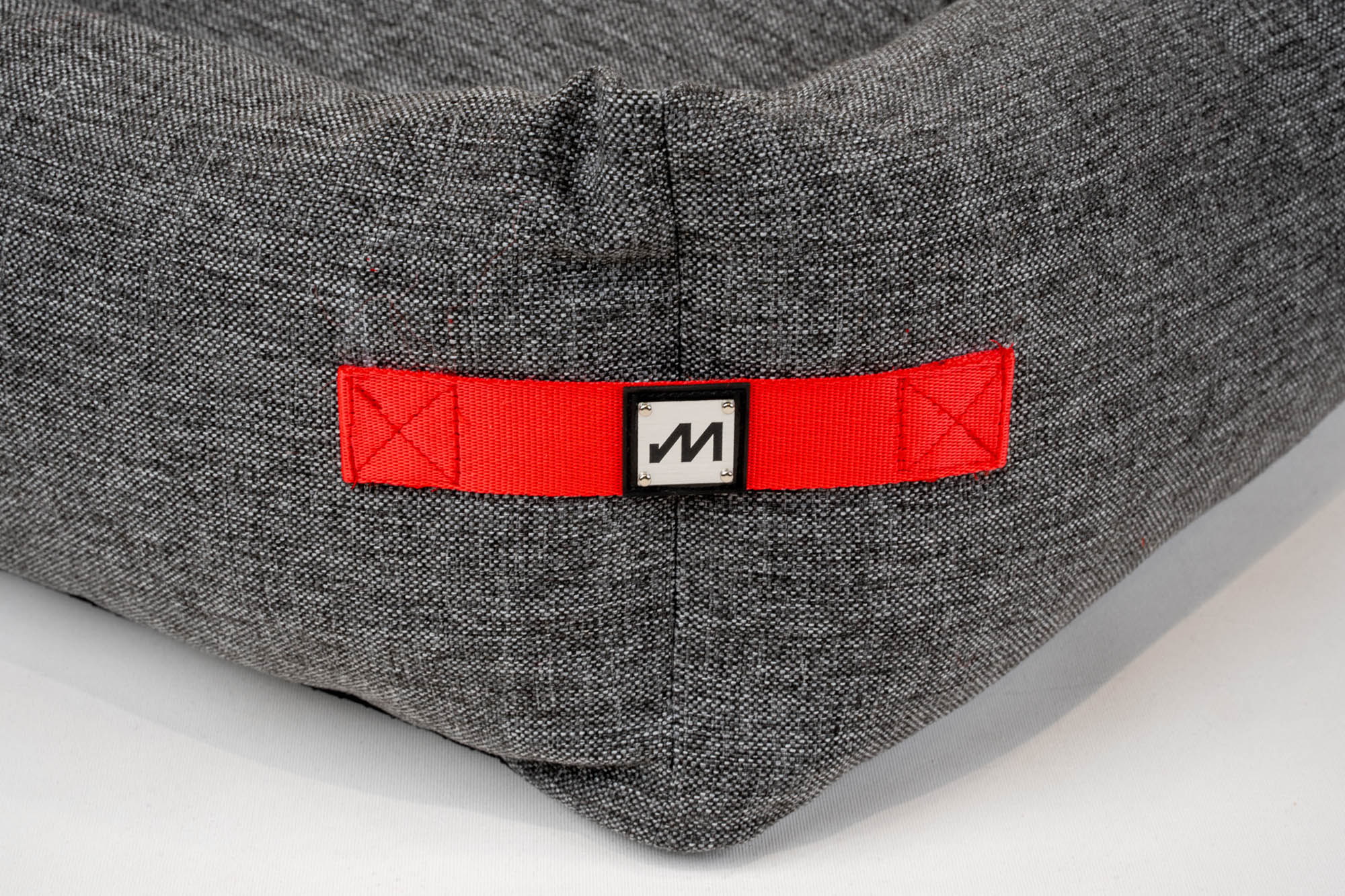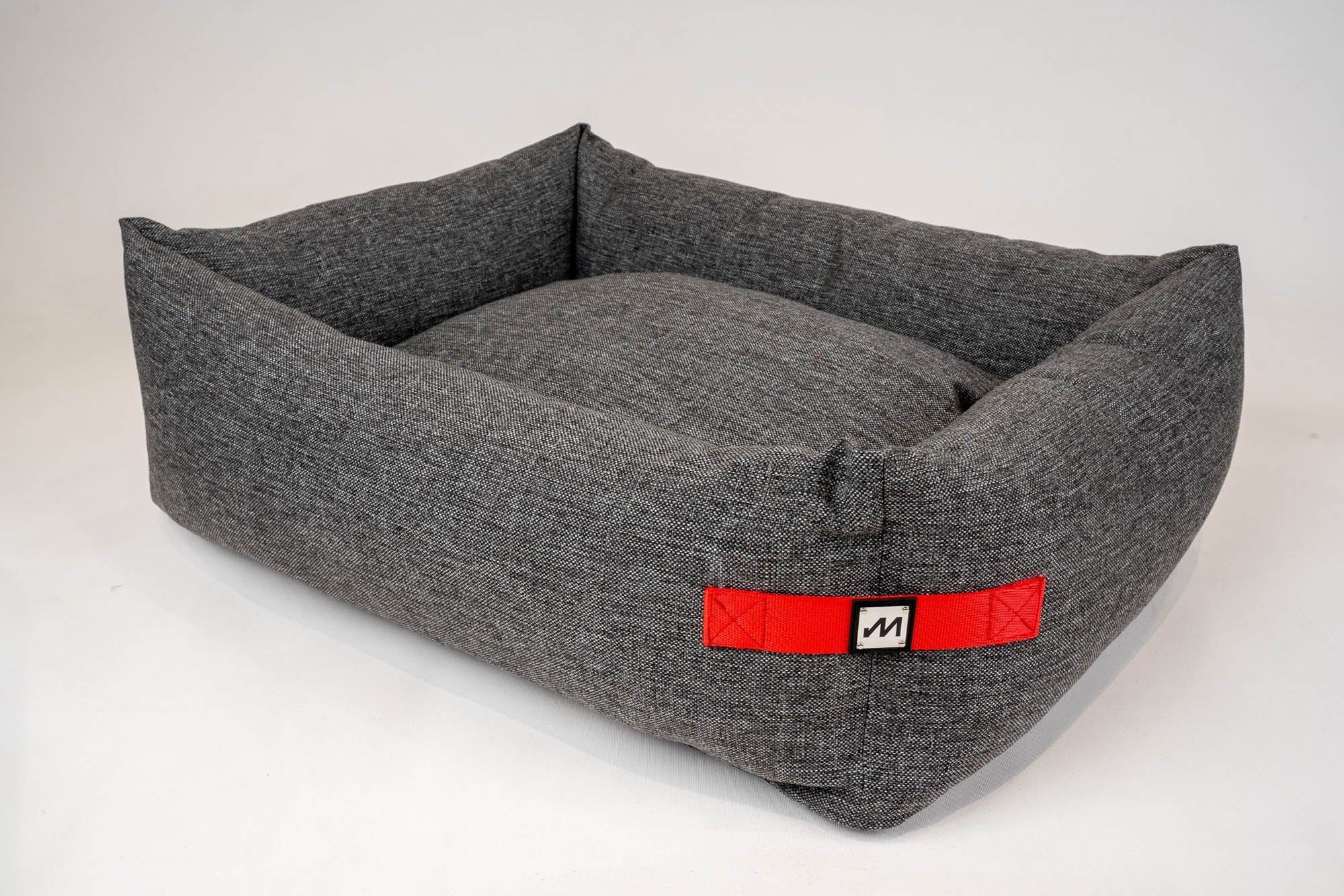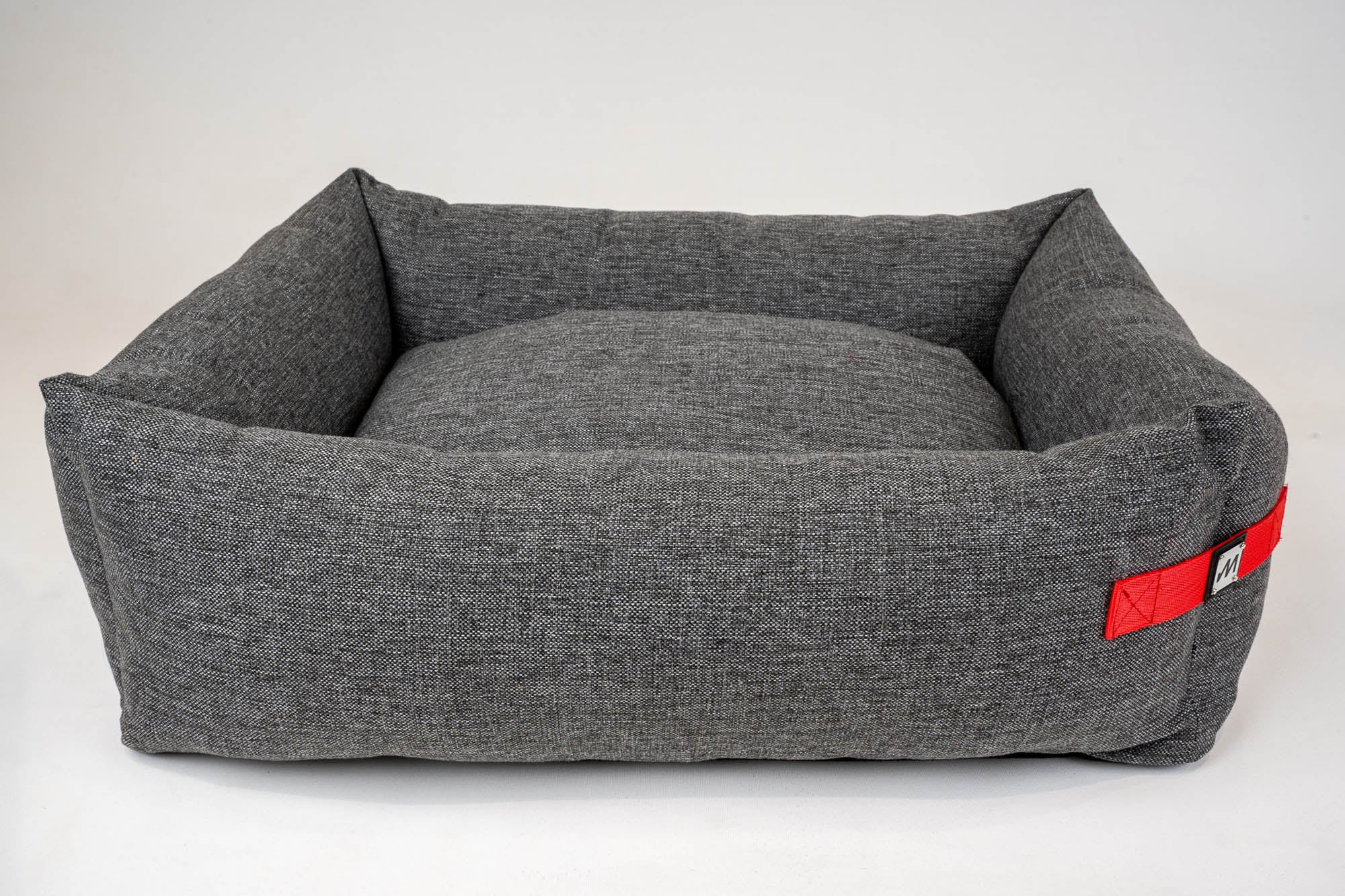 The Siena Grey Dog Bed by Scratch & Newton is the perfect blend of calm and style, with a luxurious dark grey exterior complemented by a striking red band accent on one corner. This minimalist yet eye-catching design adds a touch of flair to your home while providing your pet with a comfortable resting place. The dark grey hue brings a sense of tranquillity to any room, creating a serene space for your dog to relax in.